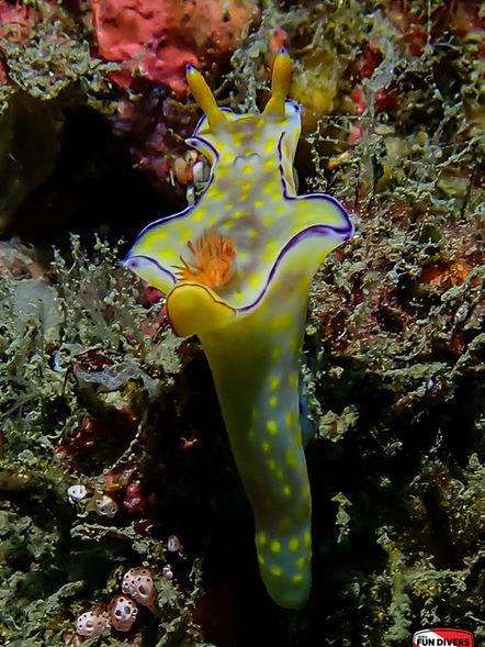 You’ll find all kinds of nudibranchs, schools of several species of damselfish, trumpetfish, lionfish, and often octopus or cuttlefish. Spring and early summer are good times to spot schools of juvenile fish, including Barracuda and Squid.