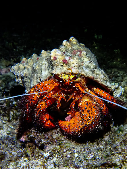 On the inside, there are whip corals hanging off the walls, soft corals sticking to the bottom, lobsters hiding in the walls, and a school of ax fish looming in the entrances. On the exterior, you’ll be guaranteed to see nudibranchs, porcupine pufferfish, and hermit crabs. Plus, wonderful surprises such as batfish, octopi, and cuttlefish.